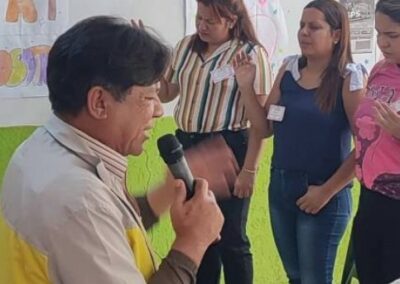 A Ministração desta reunião estava a cargo do Rev. Williams Suárez e o Rev. Juan Contreras e como parte do evento, foi realizada uma dinâmica para incentivar o trabalho em equipe dos participantes, onde um pequeno presente foi dado a cada um deles. A Rev. María Suárez apresentou e explicou a estrutura operacional do Ministério para as Mulheres, para aconselhar e acompanhar as irmãs no desempenho de suas funções.
