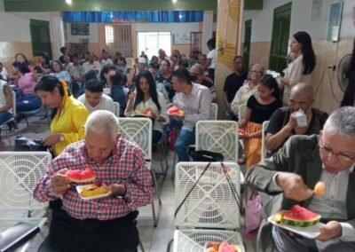 Al finalizar el culto, se compartió una deliciosa comida, frutas frescas y exquisitos postres, que fueron llevados por los miembros de la congregación como símbolo de comunión y celebración. Este momento de compartir alimentos fortaleció los lazos de fraternidad y camaradería entre los asistentes, creando un ambiente de alegría y gratitud por todo lo vivido durante la fiesta de primicias.