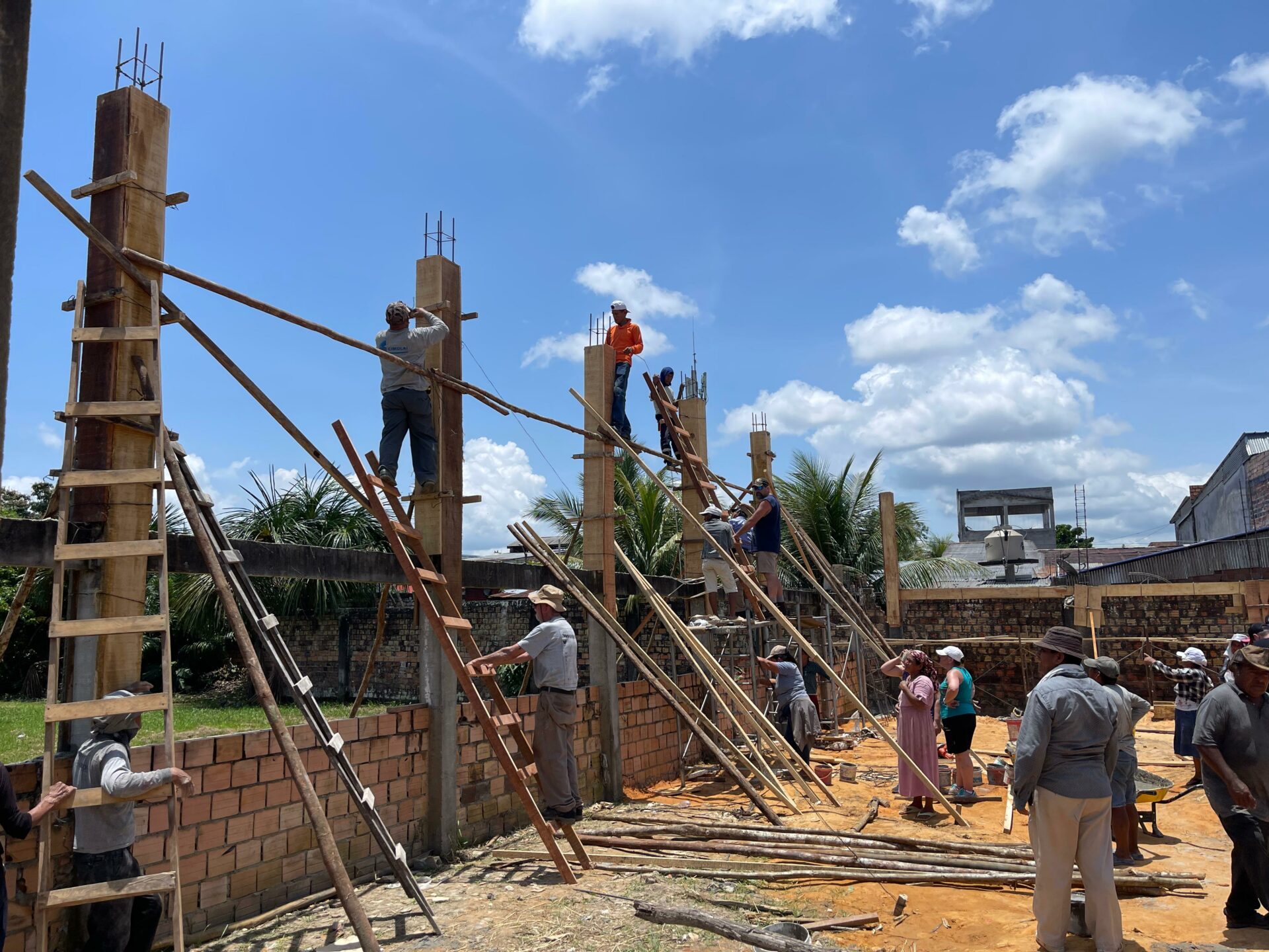Na área de infraestrutura, houve avanço na construção de um refeitório infantil de uso múltiplo. Durante essa etapa, contou-se com o valioso apoio de um grupo de 52 irmãos pentecostais da igreja Fé e Poder, que se uniram por dois dias no início dos trabalhos, enfrentando temperaturas superiores a 40 °C. Sua contribuição em mão de obra foi fundamental para impulsionar significativamente o progresso do projeto.
