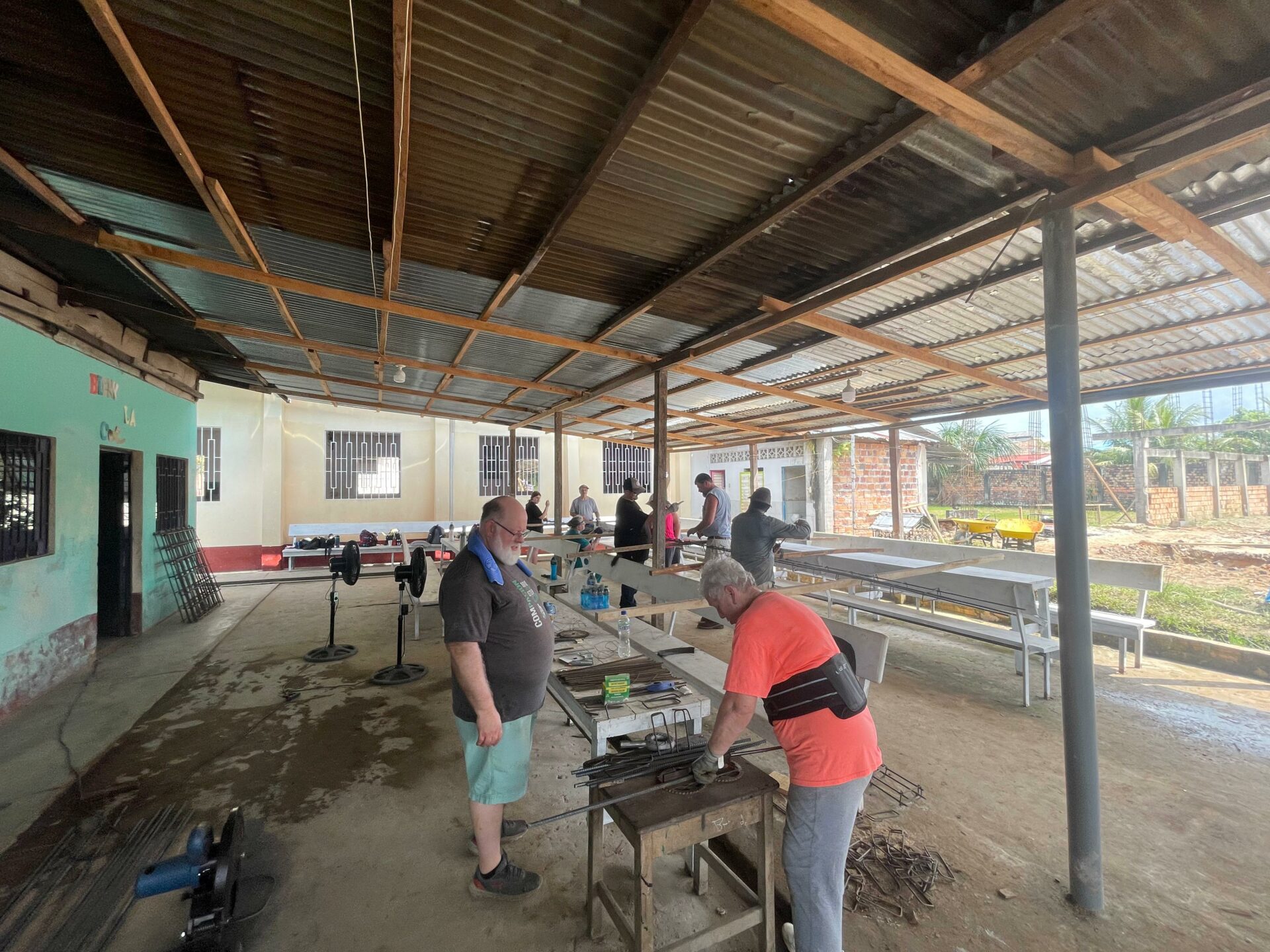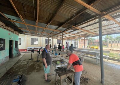 En el ámbito de infraestructura, se avanzó en la construcción de un comedor infantil de usos múltiples. Durante esta etapa, se contó con el valioso apoyo de un grupo de 52 hermanos pentecostales de la iglesia Fe y Poder, quienes se unieron durante dos días al inicio de los trabajos, en condiciones de intenso calor que superaron los 40 °C. Su aporte en mano de obra fue clave para impulsar significativamente el progreso del proyecto.