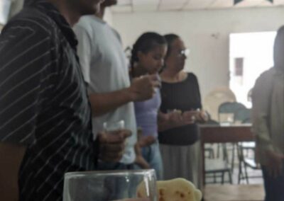 Luego, se tomó la santa cena donde muchos jóvenes recibieron por primera vez el pan y el vino, simbolizando el cuerpo y la sangre de Jesús. Fue un momento emotivo y significativo para todos los presentes. Fue una oportunidad para que los jóvenes se involucraran en la obra de la iglesia y aprendieran sobre la importancia de dar y servir.