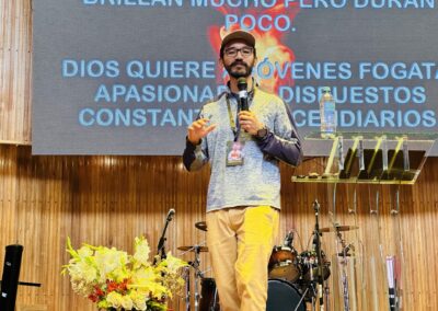 Durante la jornada del sábado se desarrollaron tres conferencias centrales. La primera, “Llamado urgente al evangelismo”, fue compartida por el Rvdo. Germán Espinoza, quien desafió a los participantes a asumir con seriedad su rol como mensajeros de las buenas nuevas. En la segunda, “El fuego que no se apaga”, el Hno. Pablo Suárez enfatizó la necesidad de mantener una vida llena del Espíritu. Finalmente, en la conferencia “Visión generacional”, el Pr. Juan José Paredes llamó a los jóvenes a pensar en la misión más allá de su propia generación, abrazando una perspectiva de legado.